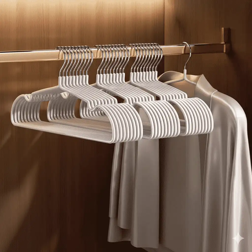 At Charisti, we manufacture most types of clothes hangers on the market — including plastic clothes hangers, velvet hangers, rubber-coated hangers, wooden hangers, metal hangers, and collapsible hangers.